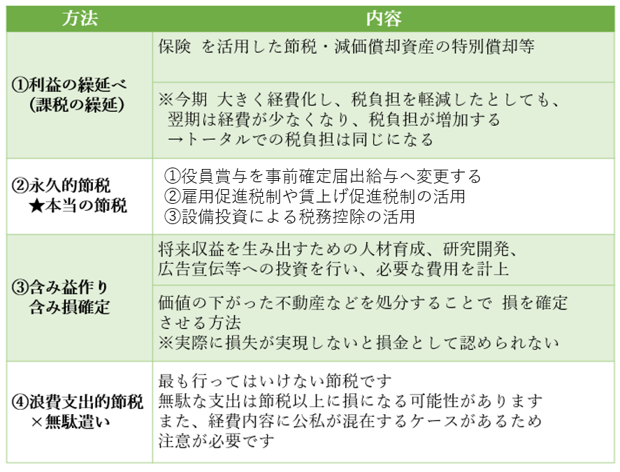 節税とは、税制で定められた内容に沿った方法で税負担を減らす行為のことです。合法的な方法であり、税務上も何ら問題はありません。