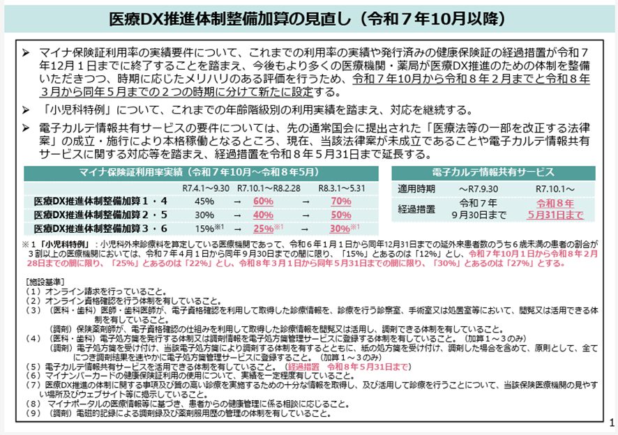 2024年から2026年にかけて、医療DX推進体制整備加算の要件が大きく見直されています。