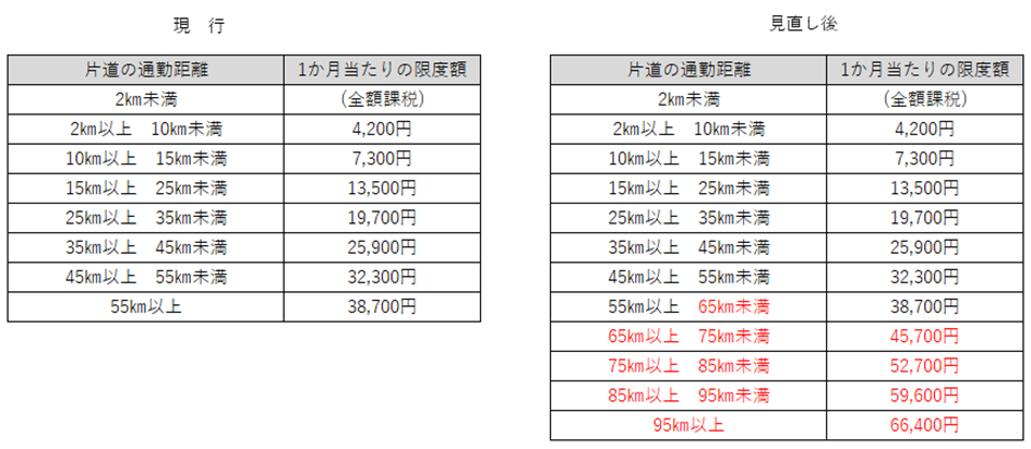 ①自動車・自転車通勤者に対する非課税限度額引き上げ