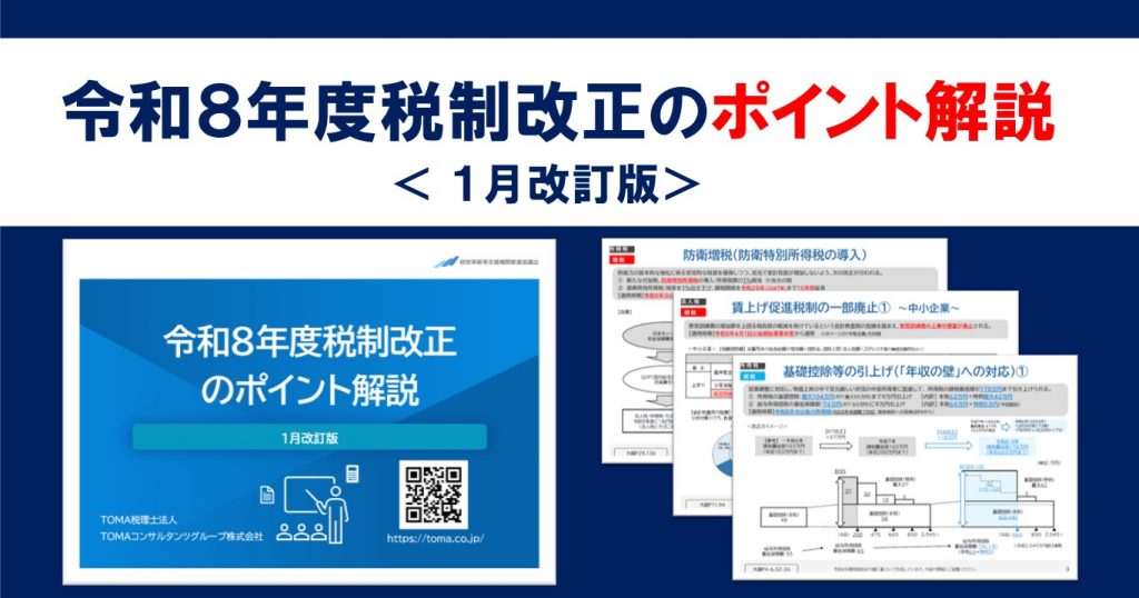 今回の改正で押さえておくべき主要な項目をピックアップした資料「令和8年度税制改正のポイント解説」<改訂版>をお届けします。改正内容の理解や今後の経営戦略の立案にお役立てください。