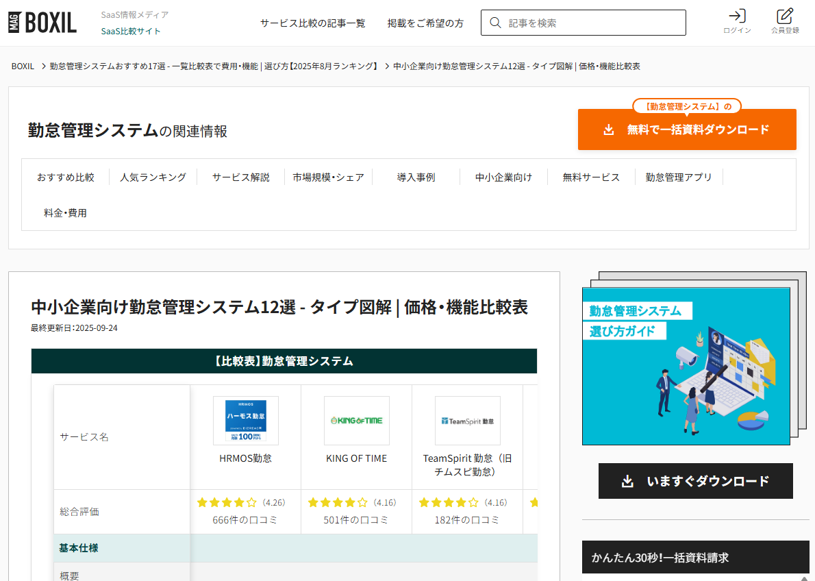 中小企業向け勤怠管理システム12選 – タイプ図解 | 価格・機能比較表